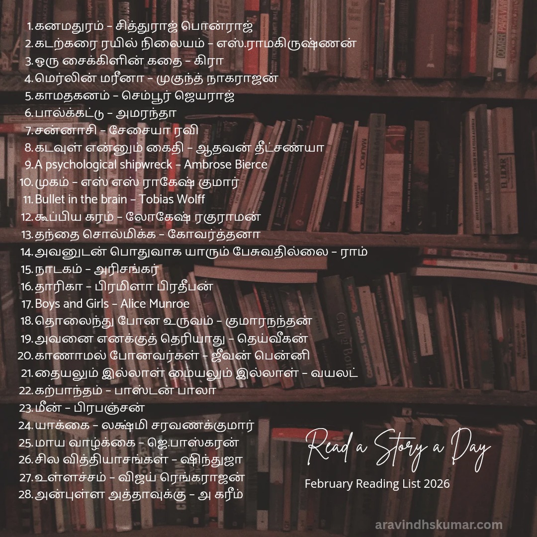 கீழே இணைத்திருப்பது ஜனவரி மற்றும் பிப்ரவரி மாதத்தில் வாசித்த கதைகள்.